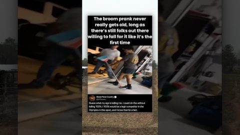 The broom prank never really gets old, long as there’s still folks out there