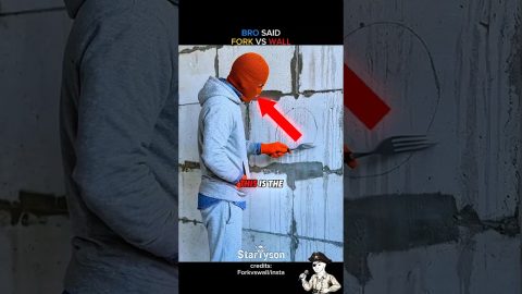 He Is Scratching Concrete Wall With A Fork 😲