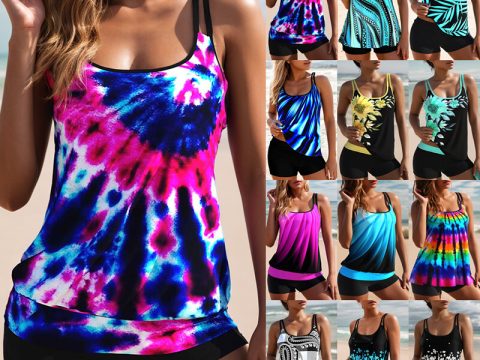 Women Ladies Tankini Set with Boy Shorts Padded Swimsuit Bathing Swim Costume