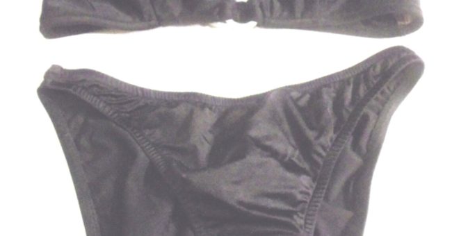 Fresh Peaches Black Ring Halter Bikini w/Scoop Bottoms Jrs S Top, S/M Bottoms