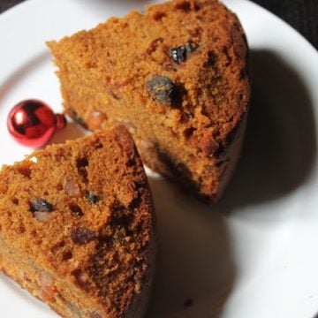 Caramel fruit cake is a delicious, soft and tender cake made with caramel and dry fruits. The caramel adds a subtle sweetness that blends beautifully with rum and dry fruits. It is a kind of cake that looks splendid but it is surprisingly easy to bake with basic pantry ingredients. This cake is perfect for festive occasions like Christmas, New year parties or can be enjoyed as an after meal dessert.Â