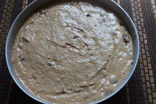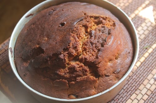 Spoon this into the cake pan and bake for 1 hour or insert a toothpick to check whether the cake is done. Remove it from pan and cool completely. Now slice and serve.