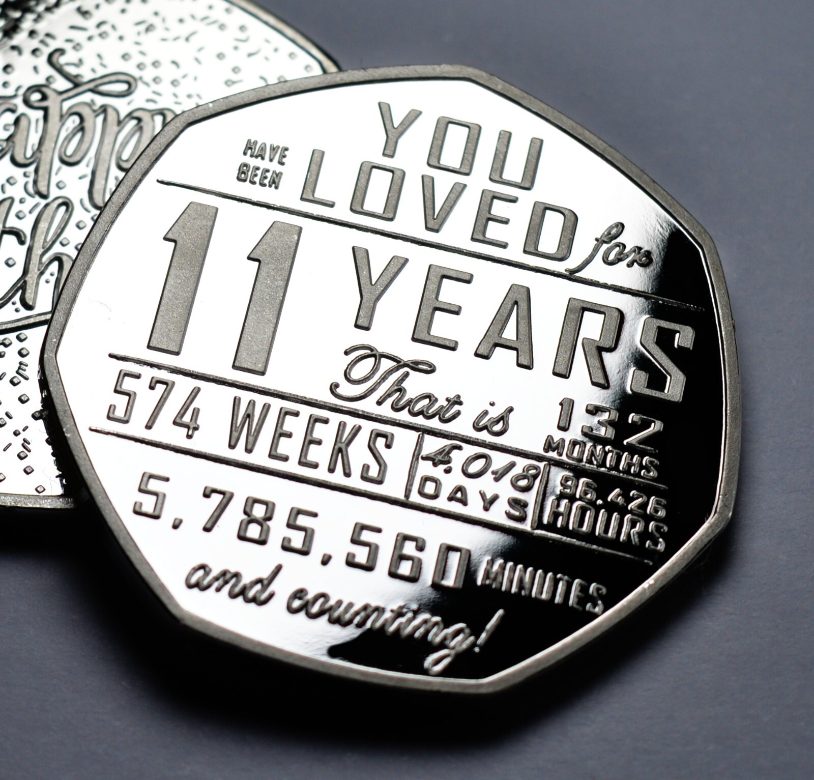 11th Birthday Silver Commemorative. Gift/Present. 11 Years Son/Daughter/Grandson