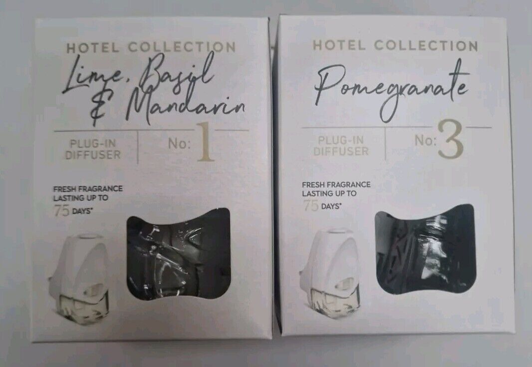 2 X Aldi Hotel Collection Plug In Diffuser Pomegranate & Lime Basil And Mandarin