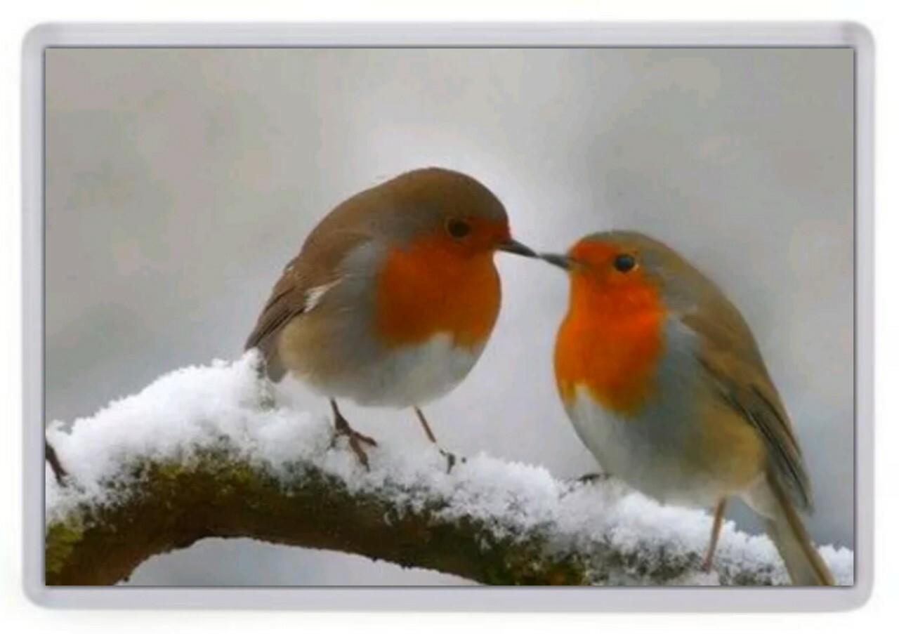 Christmas Robins Fridge Magnet. NEW. Xmas Decor. Winter Scene, Snow. Xmas Decor