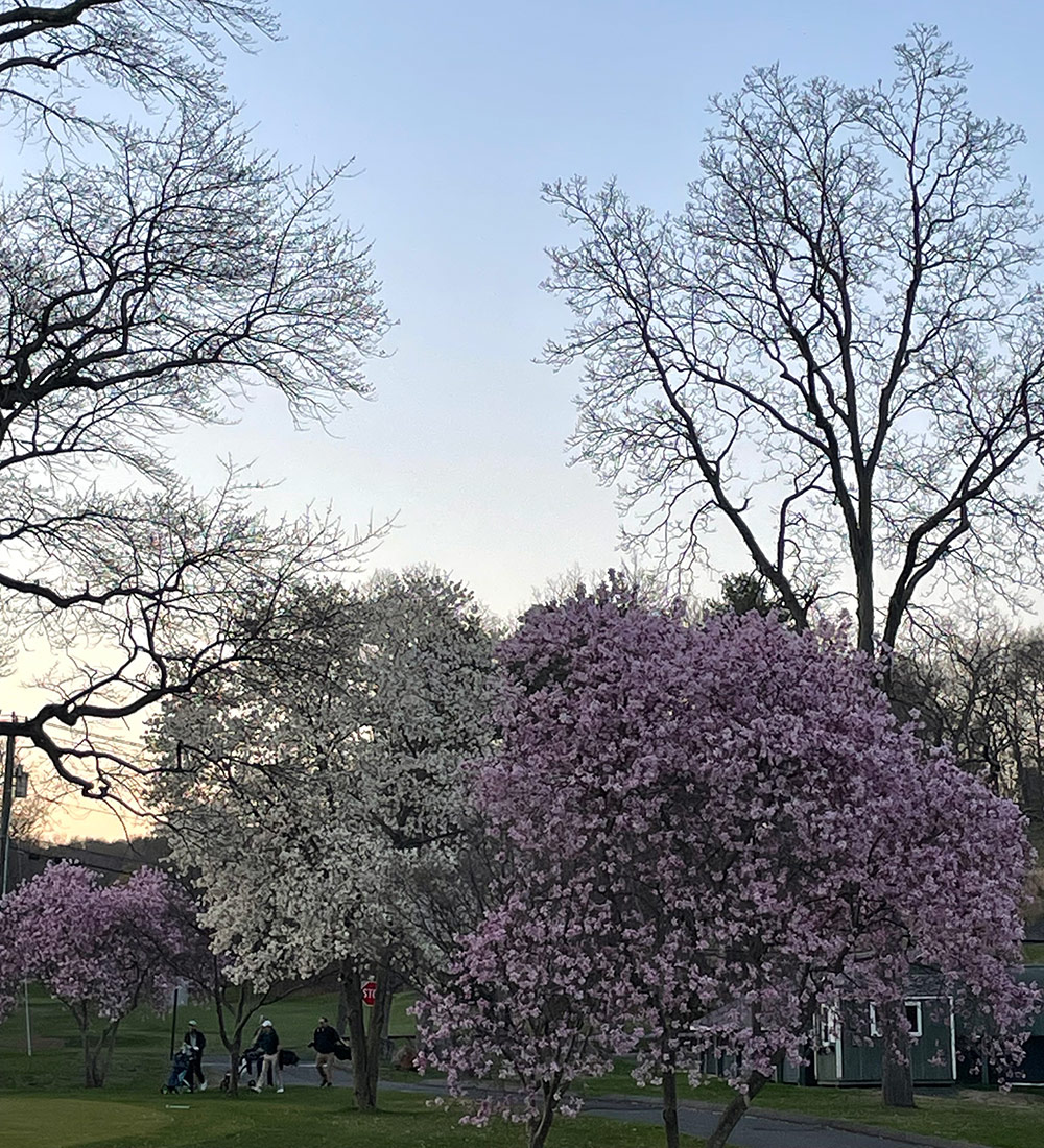 One of the firsts signs of spring I’ve seen over the past couple of weeks has been flowering trees opening up into a flurry of color in front yards and in parks across town. These were spotted outside the restaurant at the local golf course. I was happy to see that most of the trees were magnolias, but there was a couple dreaded Bradford pears (Pyrus calleryana ‘Bradford’, Zones 5–9) in the mix. Despite the downsides of this stinky, invasive tree being relatively well known, its sadly still pretty prevalent in public spaces.
