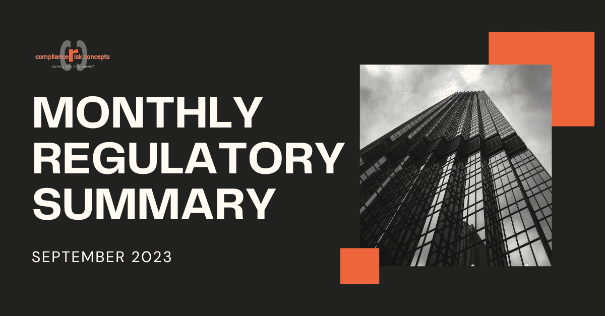 As the regulatory landscape is constantly evolving, Compliance Risk Concepts (“CRC”) is issuing its monthly review and summary of FINRA, SEC, and NFA notices and bulletins to assist our clients in keeping abreast of notable regulatory developments and deadlines in an effort to strengthen their compliance and regulatory initiatives.