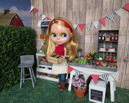 Tagged: , diorama , farm , stand , barn , food , produce , summer , doll , barbie , blythe , 1:6 , scale , dollhouse , miniature , ooak , diy , shabby , farmhouse , style , chalkpaint , chalkboard , craft , handmade , crafted , hand , farmers , market , harvest , gray , white , grass , outside , yard , store , business , country , wood , wooden , paper