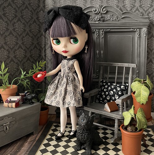 Tagged: , doll , dollhouse , furniture , ooak , gothic , frame , photo , picture , paint , chalk , blythe , halloween , daunting , drusilla , plants , tea , rocjing , chair , bow , room , bedroom , living , floor , cloth , chest , pillow , skeleton , creepy , cat , black