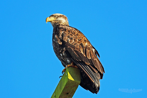 A juvenile Bald Eagle on a power pole in the Boundary Bay Delta BC Canada