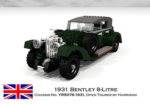 This Lego miniland-scale Bentley 8-Litre Open Tourer YR5076 (1931 – Harrsion), has been created for Flickr LUGNuts’ 89th Build Challenge, – "Over a Million, Under a Thousand", – a challenge to build vehicles valued over one million (US) dollars, or under one thousand (US) dollars.