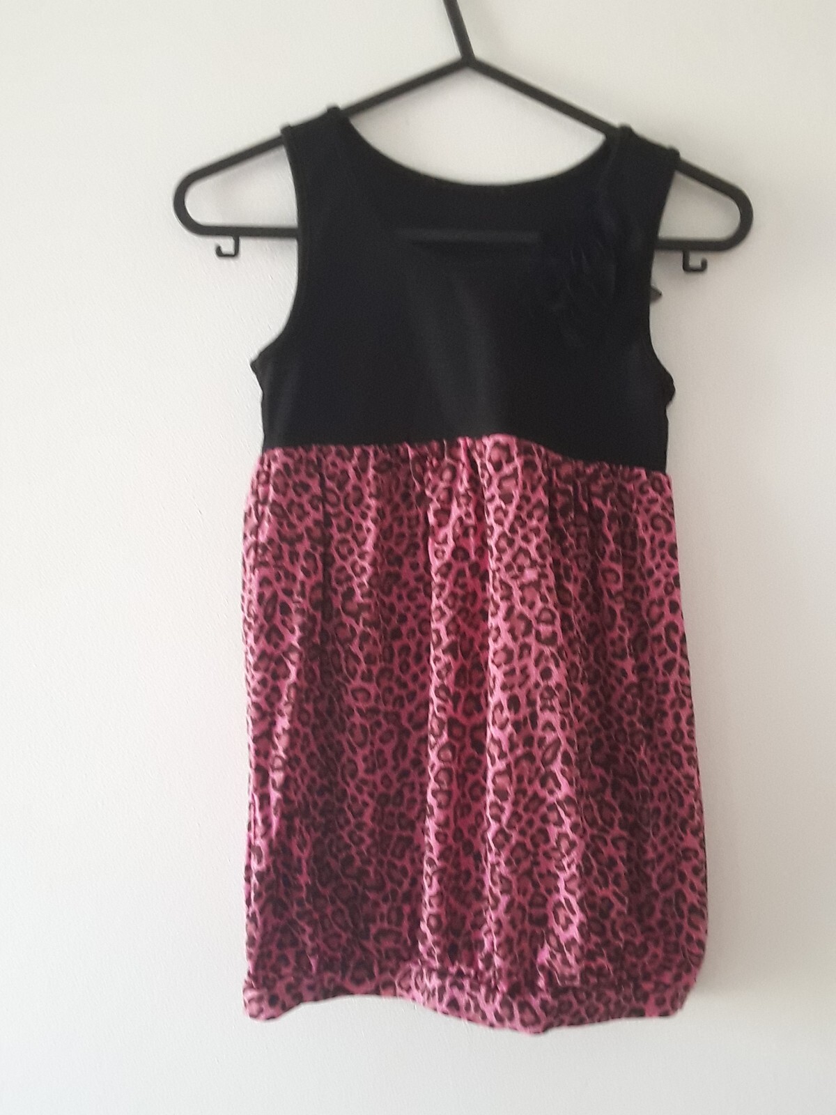 Dress Girls Size 7 /8 Pink Black With Black Flower Elastic Hemline New