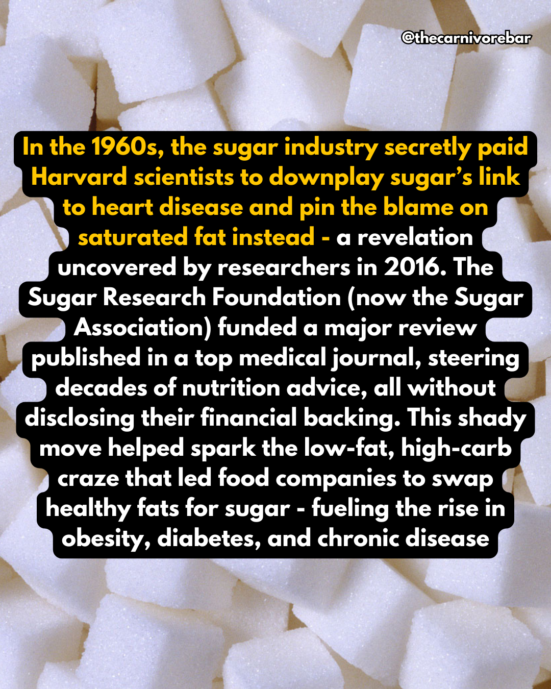 In the late 1960s, documents revealed that the Sugar Research Foundation (today’s Sugar Association) paid Harvard scientists to downplay sugar’s role in heart disease and instead blame saturated fat.