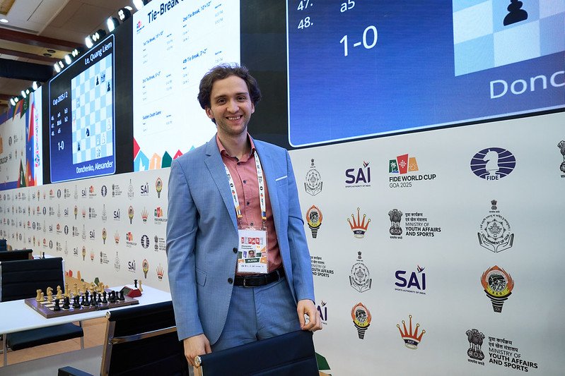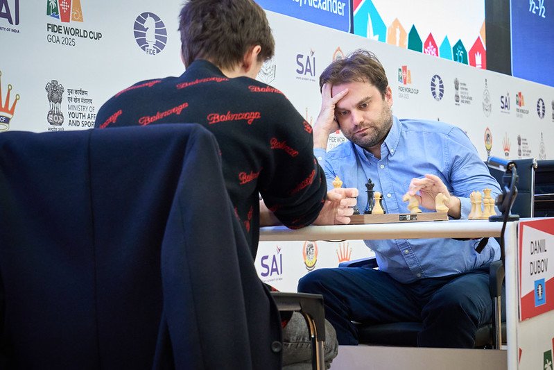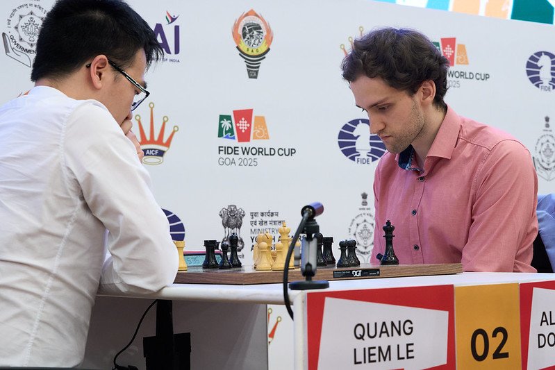 GM Sam Shankland won a brilliant first game and ended the 2025 FIDE World Cup run of GM Daniil Dubov 2-0 in tiebreaks to reach the Quarterfinals. GM Andrey Esipenko also needed only two tiebreak games to overcome GM Alexey Grebnev, while GM Jose Martinez knocked out former world top-10 GM Pentala Harikrishna in four games. The longest match of the day featured four wins for Black before 61st-seed GM Alexander Donchenko finally beat 13th-seed GM Liem Le with White to clinch the match. Â