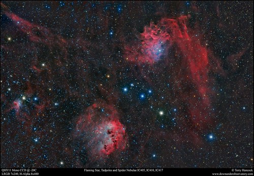 Flaming Star, Tadpoles and Spider Nebulae IC405, IC410, IC417