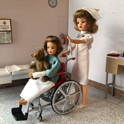 Nurse Tammy is taking care of two little patients – one human and one bear. Her human patient fell out of a tree and injured her arm. They admitted her because she is dizzy and running a fever. They are off to x ray her arm and they are waiting on her blood work. She is in good spirits.