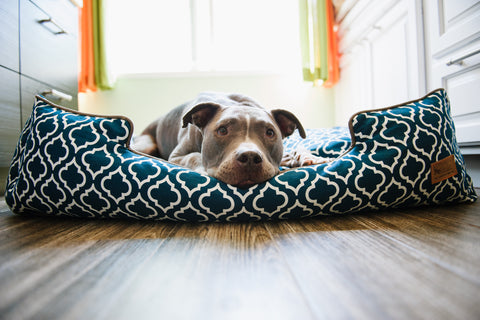 Dogs who need a place to prop their heads will love the Moroccan Lounge Bed! With four bolstered sides and one lower entry point, it supports headrests from every angle.