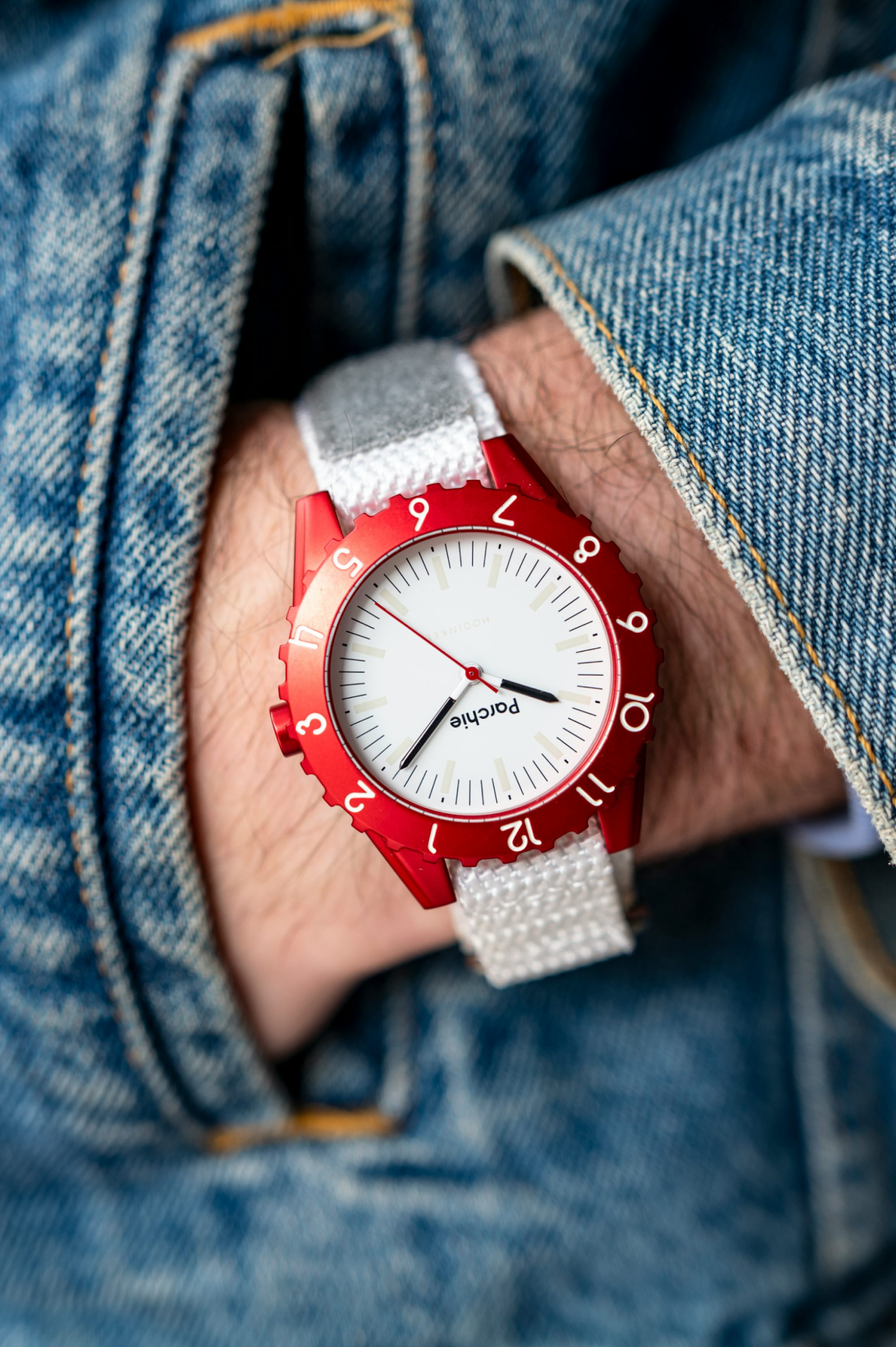 True to Parchie’s brightly-colored roots, the Parchie “Lunar-Time” Limited Editions for Hodinkee feature a bold, metallic red aluminum case reminiscent of a certain iconic watch specifically designed for the intensity of space travel. The red bezel is home to white numerals, designed to easily indicate the hour and minutes for little learners via the black-tipped hands. We’ve paired all of that with a creamy white dial that includes black hash marks and a faux lume treatment for the indices. A jolt of red on the second hand perfectly matches the case and creates a stellar combination, if you ask us. And if you look closely, you’ll even spot the Hodinkee logo hidden at six o’clock.