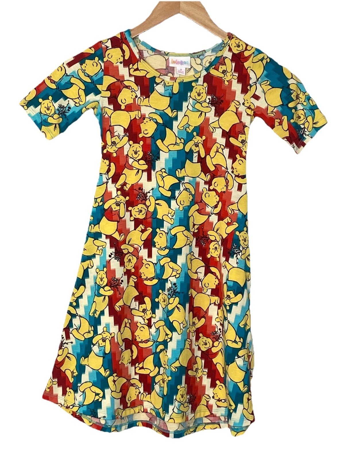 Lularoe Girls Winnie The Pooh Dress Size 8 Vibrant Colors Stretchy Shirt Sleeve