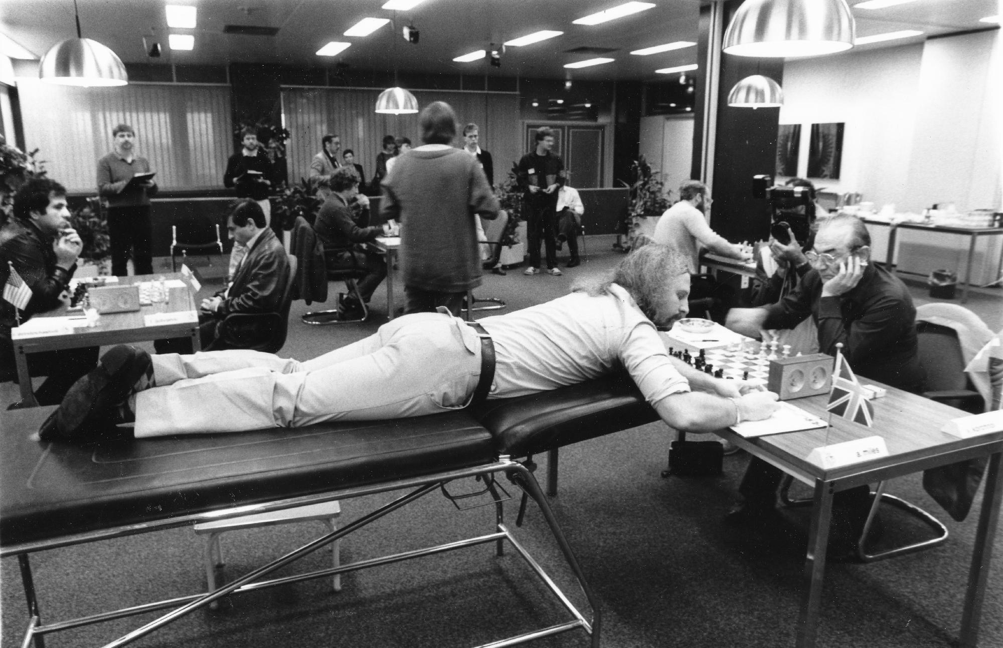 He finished the Interzonal Tournament in Tunis in 1985 in the lower midfield and lost several games miserably. At the tournament in Tilburg in 1985, he suffered from severe back pain but was allowed to continue the tournament lying face down on a couch, despite protests from some of the other players.