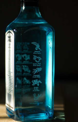 Tagged: , bombay , sapphire , gin , alcohol , booze , bottle , blue , light , shining through , etched , ingredients , kitchen