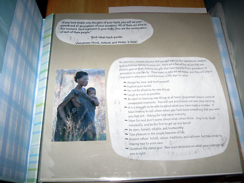 Inside the scrapbook, guests could glue photographs of pregnancy and parenting next to their wisdom and advice.