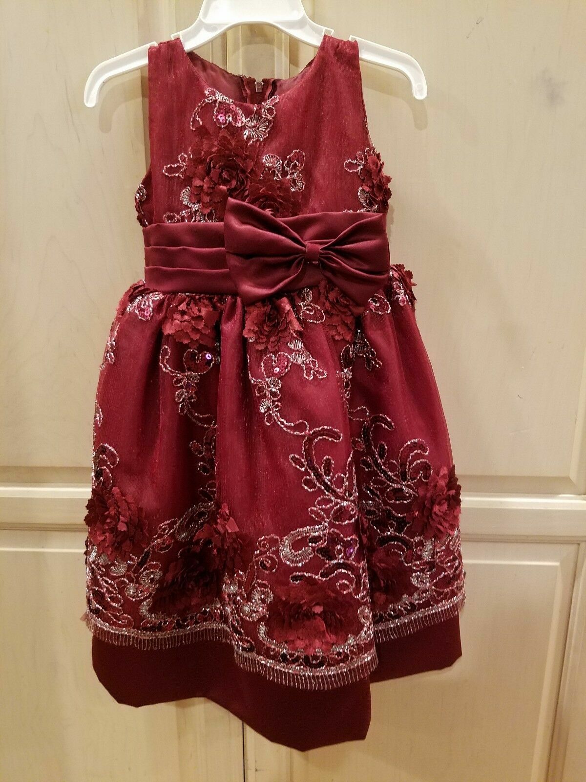 SHANIL Young girls size 8 Holiday/Party dress Burgandy silver Sequin appliques