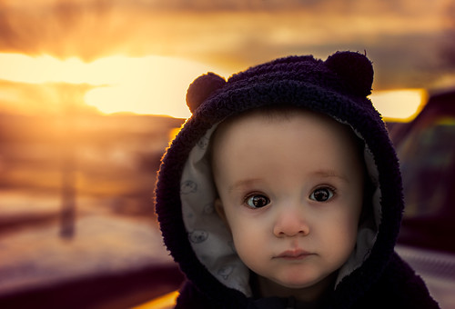 Checking in after a long absence. We were just getting back home when this glorious sunset unfolded right in front of my eyes. My littlest one Avi was the victim this time of an impromptu shot. He was dressed in his snuggly bear outfit and I very quickly plopped him right on the hood of my husband’s truck for this shot. His look of absolute seriousness (which completely belies his happy nature btw) is one of question. Why are you doing this Mom?! Shhhh little one. You will learn. You will learn. Lol.