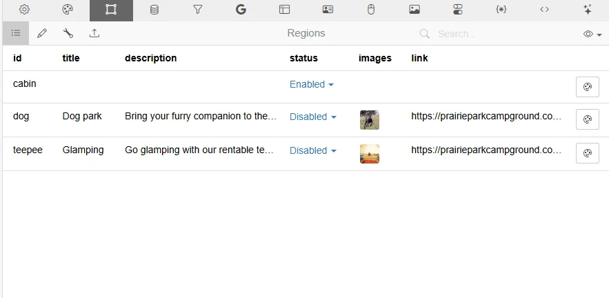 The new “cabin” Region I created in the screenshot above has been added to my list. But it’s missing important details. To fill these in, click on the Region you want to edit.