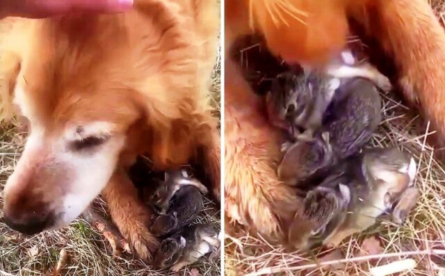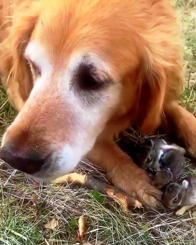 Otis picked up each of the delicate baby bunnies carefully with his mouth and placed them safely between his paws. After gathering all the distraught bunnies, he comforted them with licks and snuggles until they were calm. Jenna searched for the mother’s nest where these lost bunnies belonged.