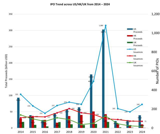 The combined impact of regulatory barriers, delisting waves, and geopolitical uncertainty has led to a structural realignment in global capital markets. In addition, the increasing popularity of private market capital raising in the United States further diminished the appeal for public listings.