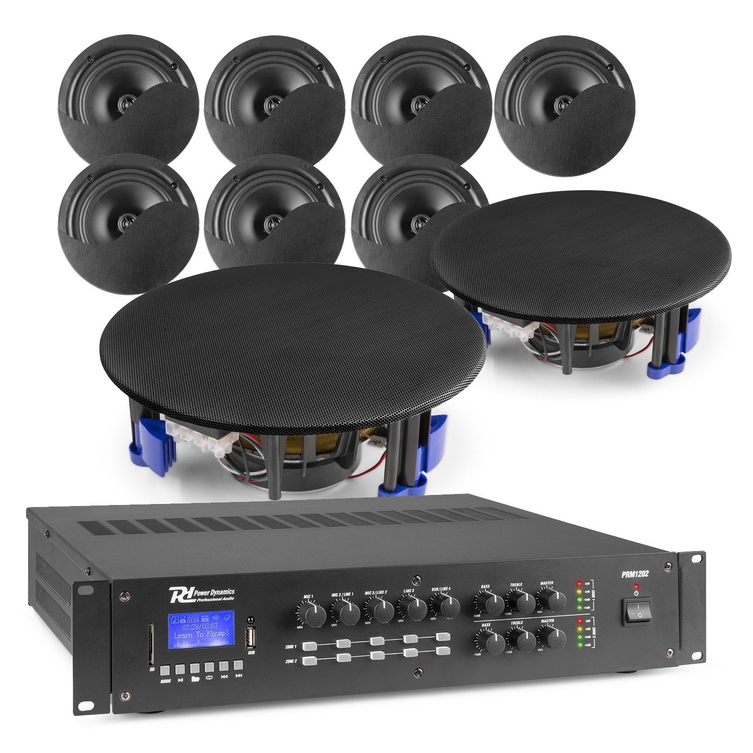 2-Zone Black Ceiling Speaker System Package – 8 x 6.5″ Speakers
