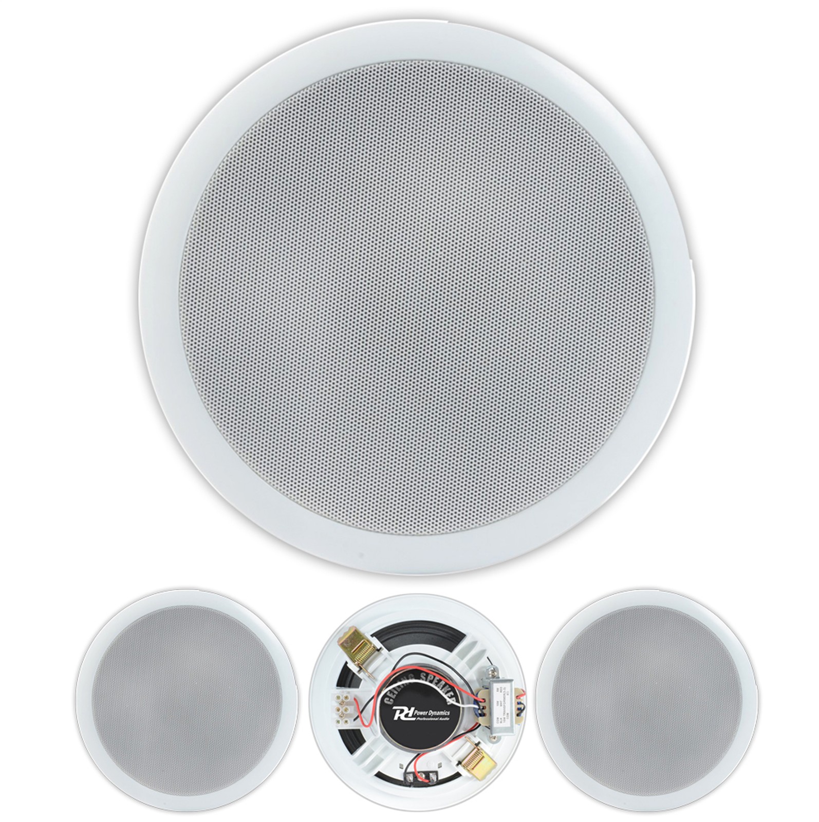 4 Pack Power Dynamics 100V Line 6.5″ Office Bar Shop White Ceiling Speakers