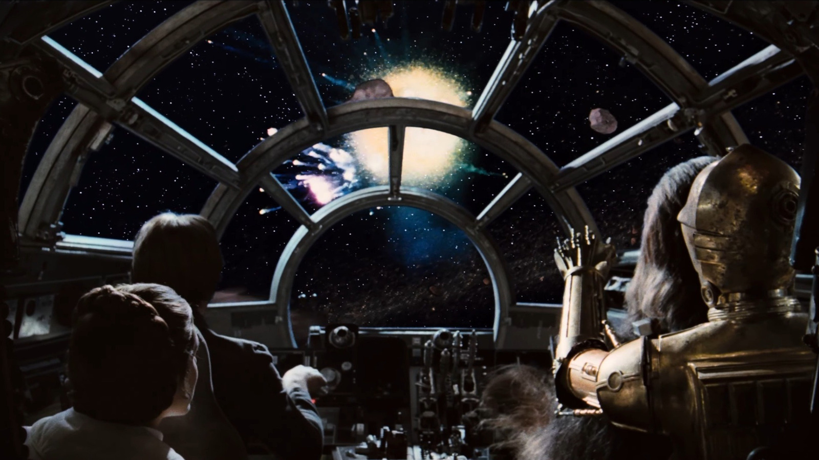 But there’s another way that “Star Wars” worked hard to capture the feeling of WWII, and it’s not just with the Empire being a stand-in for wartime Germany (watch the movie in German, speeches by Imperial characters take on a new dimension). The extra WWII-ness is also echoed in the design of the ships — especially in the Millennium Falcon. While some call it the Lockheed P-38 Lightning of “Star Wars” thanks to its speed, the ship’s cockpit is more reminiscent of the Boeing B-29 Superfortress. Well, that’s not entirely accurate. It’s actually almost identical to the greenhouse cockpit of a B-29, and that was by request from George Lucas himself.