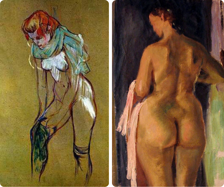 Cireasa pe tortul nostru vine din faptul ca spatiile muzeelor sunt un delicios mod de a contrabalansa rigiditatea si falsitatea standardelor actuale de frumusete feminina. La distanta de ani-lumina de siluetele standardizate din paginile revistelor sau din social media, care nu fac altceva decat sa ne disocieze de propriul corp, trupurile imortalizate pe panza de Tulouse-Lautrec, Samokhalov, Gaugain, Freud sau Hanna, ne ofera un licar al unei alte realitati fizice: mai vii, mai complexe, mai diverse.