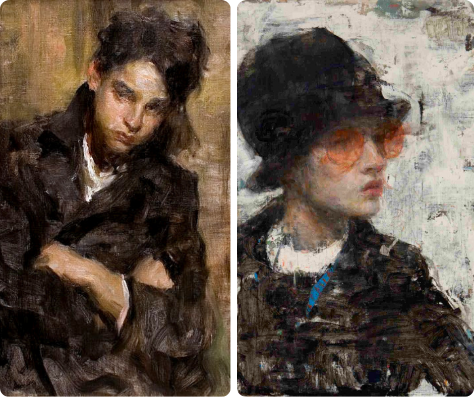 Si, chiar daca mai sus am vorbit despre imbracaminte si despre cum ne putem imbogati garderoba, demersul e total diferit de cum se desfasoara o sedinta oarecare de shopping. Pentru ca atunci cand privim o opera de arta, ne dam timp: emotiile pe care le simtim in fata unui tablou sunt generate de nuante si texturi a caror frumusete nu se faneaza o data cu trecerea timpului. De altfel, intr-un astfel de demers – in care observam si studiem arta vizuala pentru a ne imbogati estetic, stilistic, emotional – nimic nu este impus, fortat sau obligatoriu: haina, culorile, materialele sunt interpretate in functie de sensibilitatile fiecaruia si, ulterior, de garderobele respective. Cat despre materializarea magiei estetice gasita intr-o pictura, exista nenumarate posibilitati: croitorese, bouticuri vintage, trieri de garderobe, scotociri prin cuferele bunicelor si matusilor noastre…