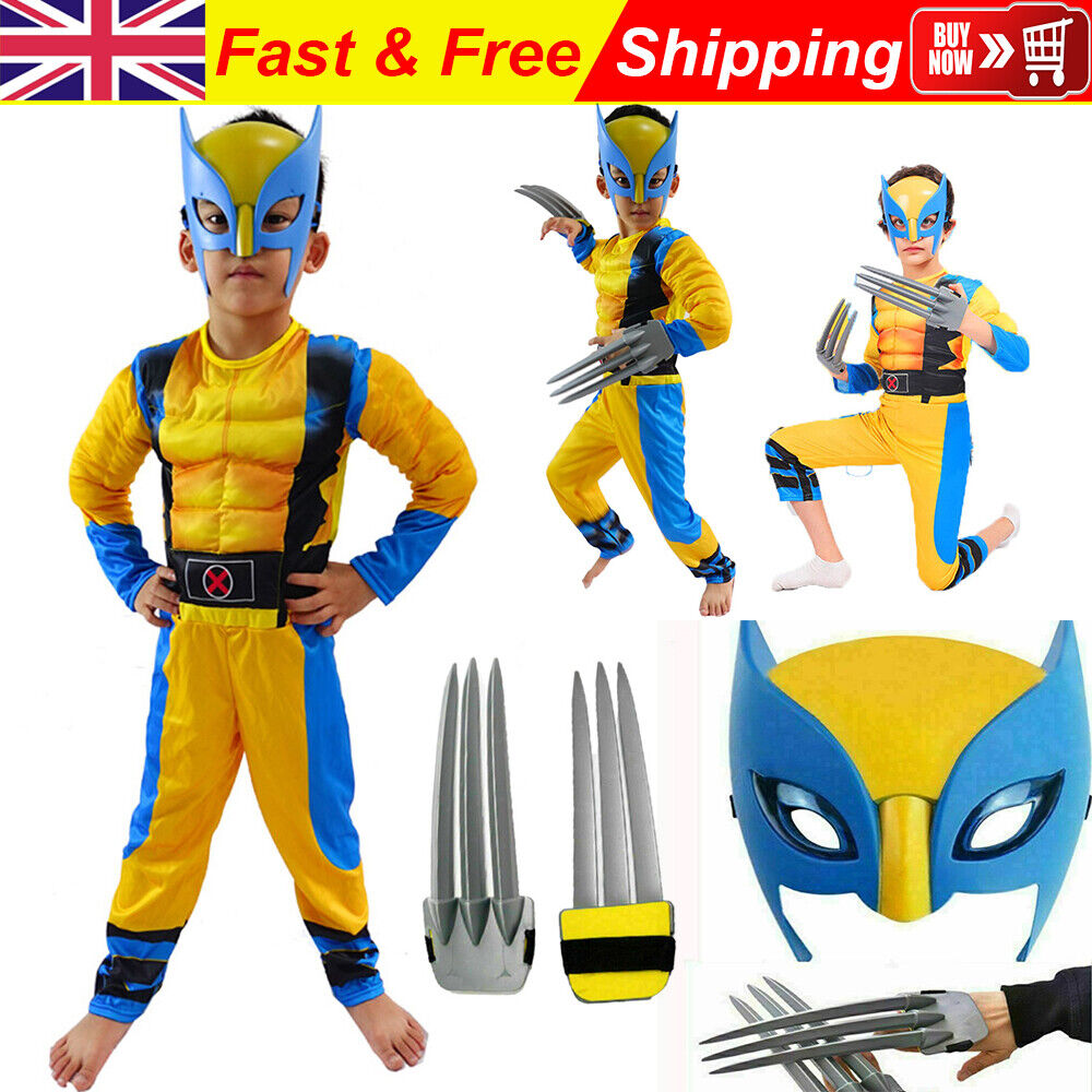 Boys Kids Wolverine Book Day Costume Tight Muscle Suit Party Fancy Dress Cosplay