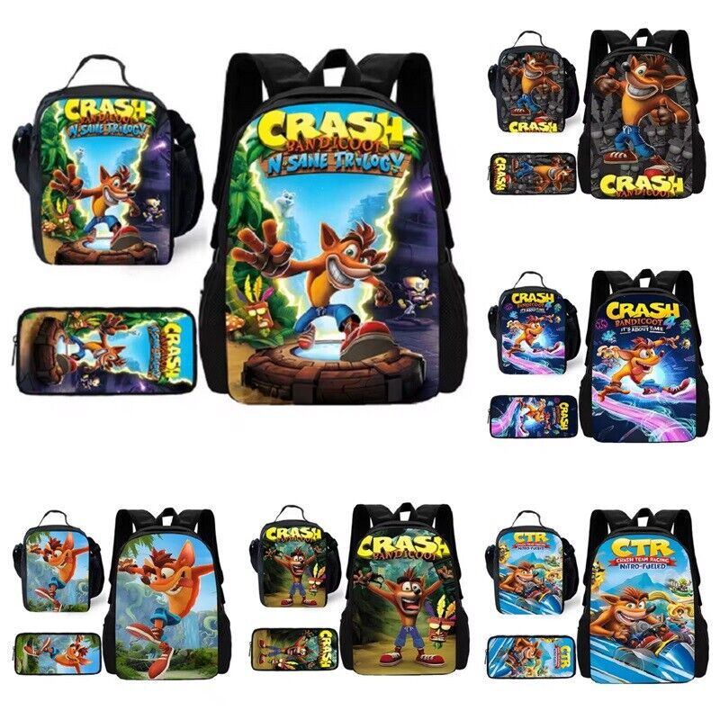 Crash Bandicoot Backpack School Bookbag Insulated Lunch Bag Rucksack Pencil Case