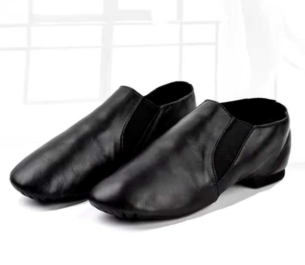 Slip on jazz shoes Black Leather Neoprene Rubber Split sole Kids & Girls Sizes