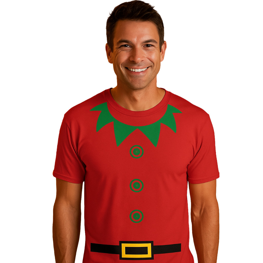 Men’sFunny Elf Christmas T Shirt Fancy Dress Costume Novelty Xmas Party Red Top
