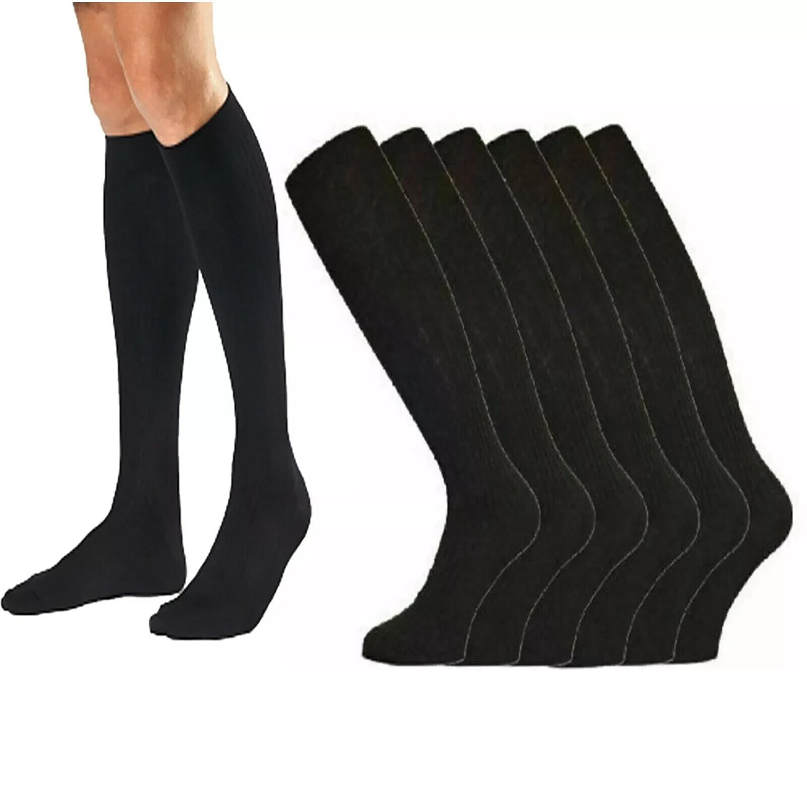 New Mens Gents Long Hose 100% Cotton Ribbed Comfy Grip Knee High Socks UK 6-11
