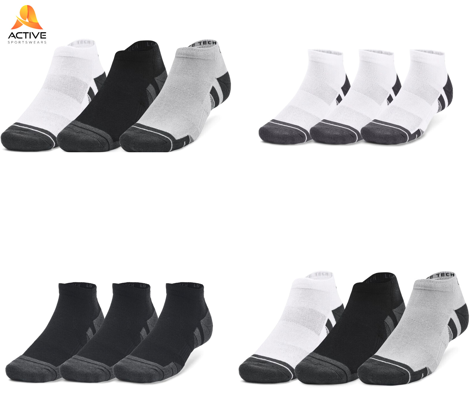 Under Armour Unisex Performance Tech 3 Pair Low Cut Socks Sports Training Socks