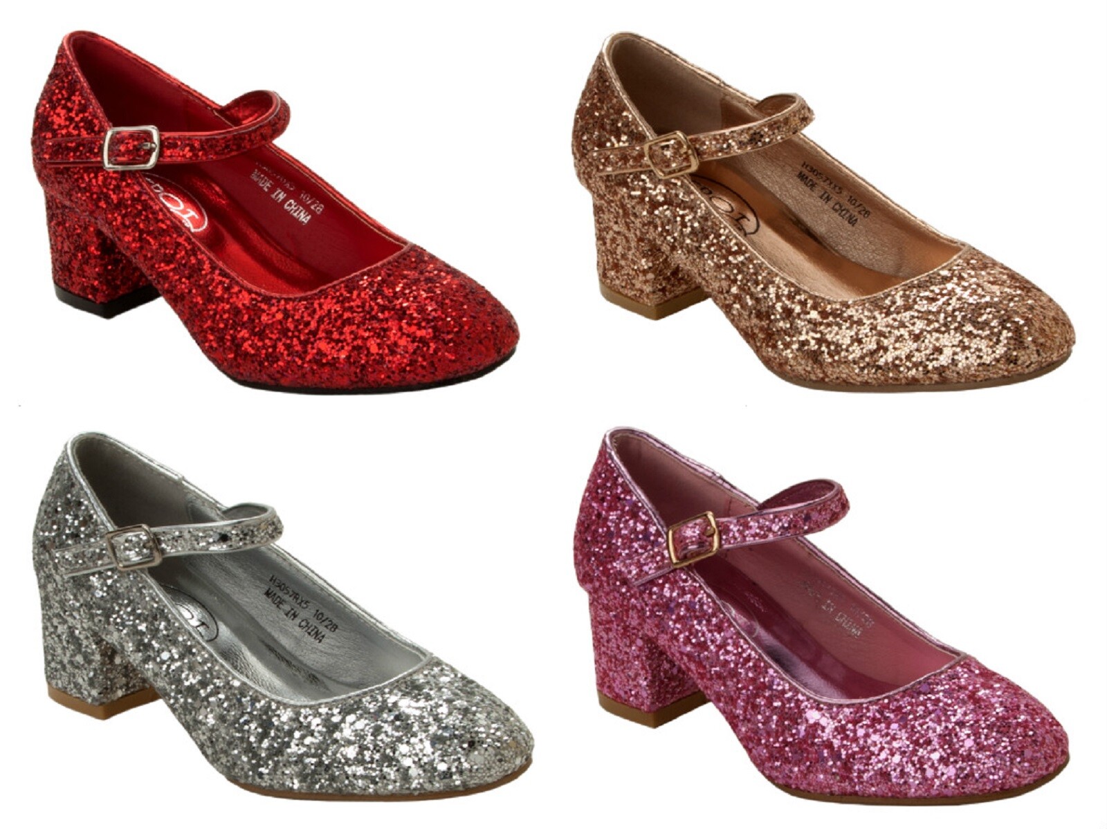 GIRLS GLITTER BRIDESMAID PARTY WEDDING DRESS UP LOW HEEL SHOES KIDS UK SIZE 10-2