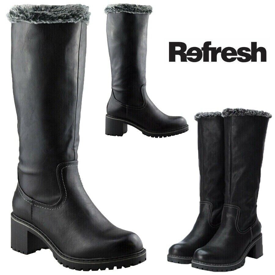 Ladies Womens Boots Block Heel Mid Calf Riding Zip Up Winter Biker Shoes Sizes