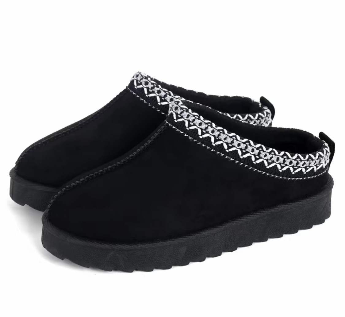 ON TREND UNISEX CHILDREN’S BLACK FAUX SUEDE AND FUR WITH AZTEC TRIM COSY SHOE