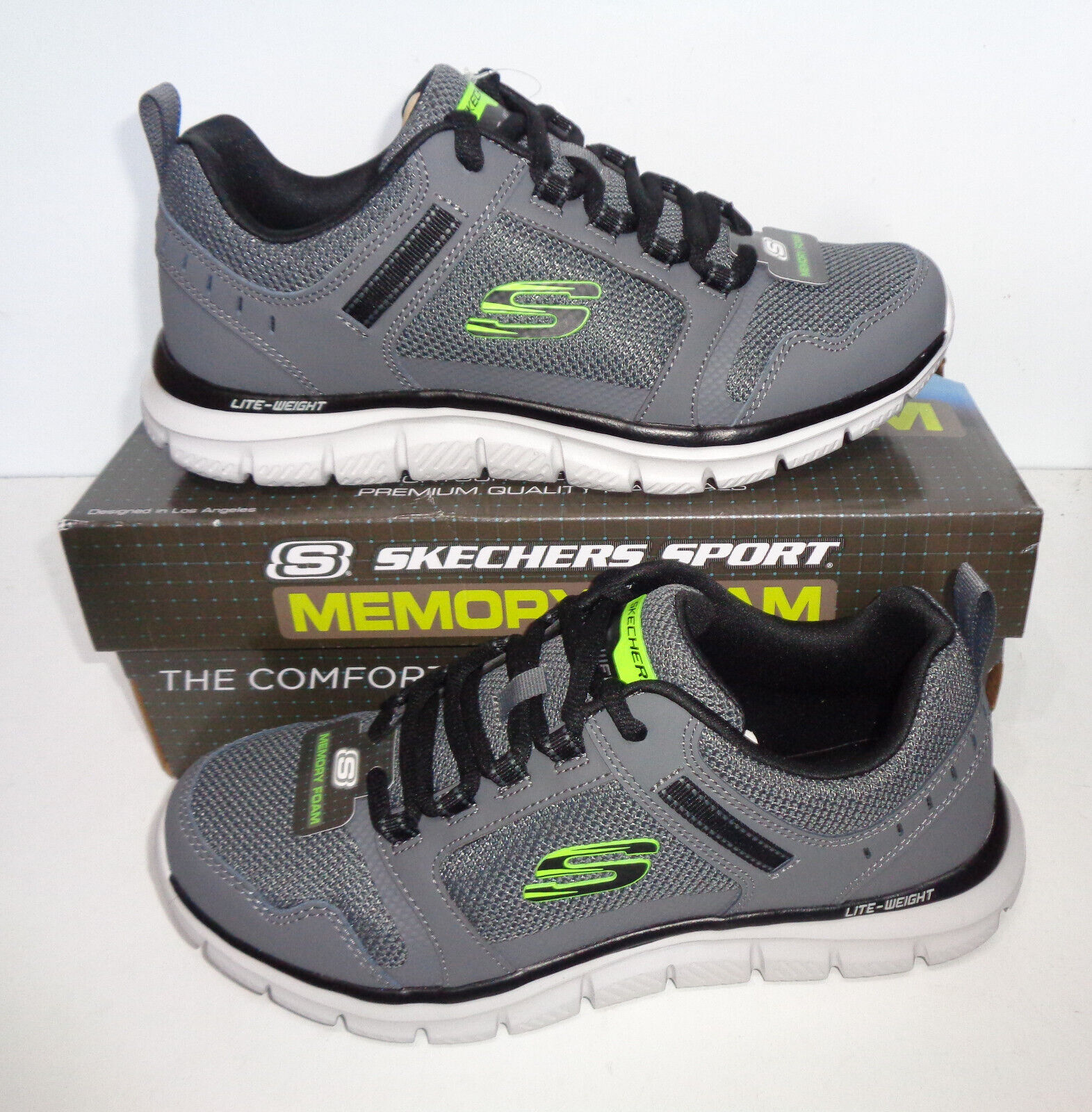 Skechers Mens Memory Foam Grey Lace Up Trainers Casual Gym Shoes New UK Size 7.5