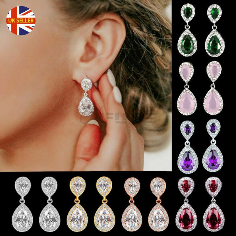Vintage Style Classic Pear Shaped Teardrop Cubic Zirconia Drop Dangle Earrings