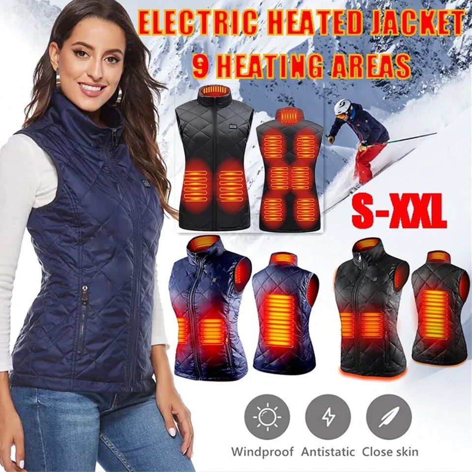 Electric USB Heated Jacket Waistcoats Womens Winter Heating Pad Body Warmer Tops