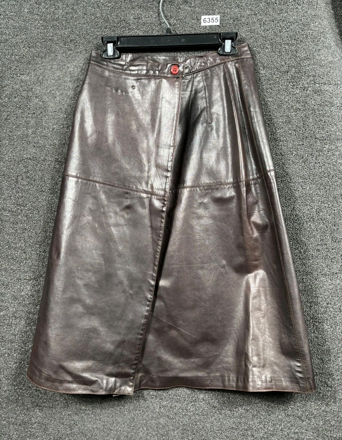 Sabrina Genuine Leather A-Line Skirt Womens Size 8 Brown Knee Length *READ