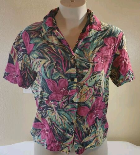 Vintage Sag Harbor Tropical Shirt Womens Medium Top Hawaiian Cruise Wear Beach